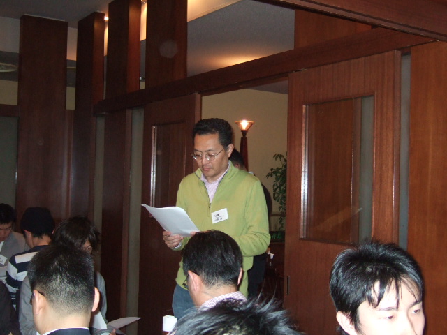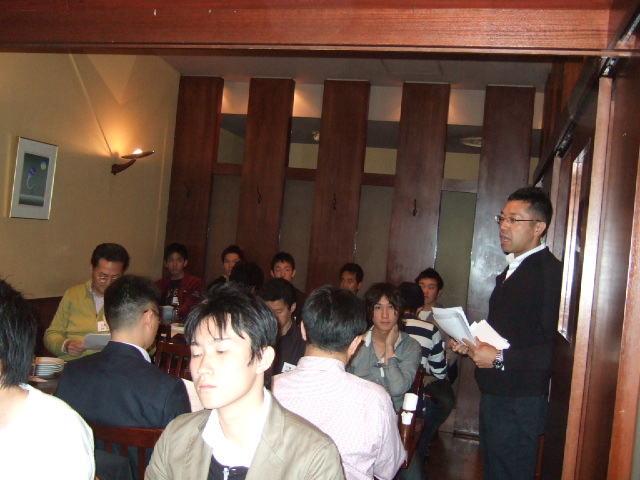 1.開会挨拶(岩間会長) →写真 2.役員会からの報告事項(上田運営委員) →写真 3.平成20年度役員の承認 4.平成19年度会計報告・承認(二宮会計、山中会計監査) →写真(二宮氏), 写真(山中氏) 5.乾杯(金森氏) →写真 6. 現役野球部近況報告(長束監督) →写真 7.閉会挨拶(二神副会長) →写真 |