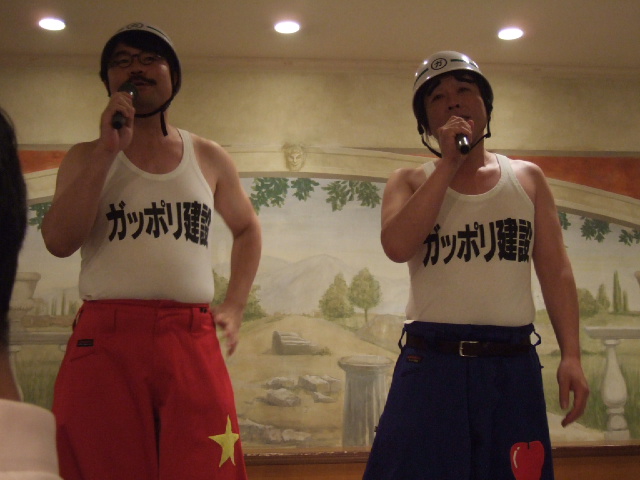 遠方・都城からいらした稲元先生のご挨拶、最後の夏の大会から10年目を迎えた アニバーサリー世代である36期生の紹介に続き、今年は20周年記念パーティーということでの 特別企画もございました。「テレビにも出ているおもしろい芸人」 であるガッポリ建設にも出演いただき、笑いに包まれたひとときを過ごすことができました。
