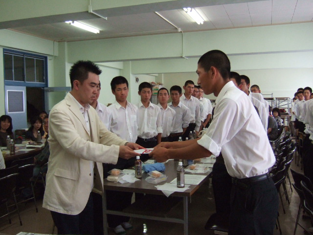 | 陵球会から(卒業生あいさつ) | 陵球会から(会長から主将に目録贈呈) |