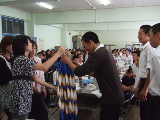 | 後援会から激励の言葉 (鈴木氏) | 後援会から千羽鶴贈呈 |