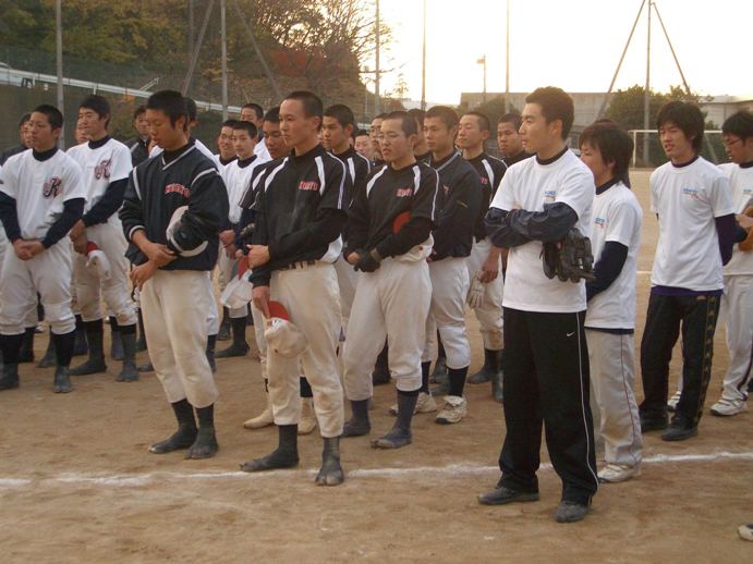2007年12月9日(日)、11時から光陵高校グラウンドにてソフトボール大会が 開催されました。すっかり恒例となった、現役野球部、後援会(父母会)、 陵球会(OB会)の3団体の親睦を目的とした交流イベントです。