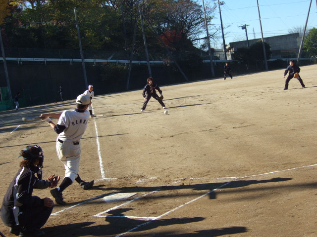 2008年12月7日(日)、9時から光陵高校グラウンドにてソフトボール大会が 開催されました。すっかり恒例となった、現役野球部、後援会(父母会)、 陵球会(OB会)の3団体の親睦を目的とした交流イベントです。