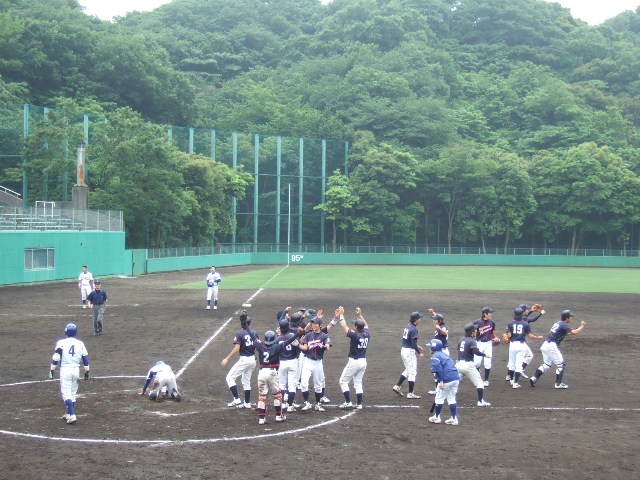 2009年5月30〜31日。関東学院大学釜利谷野球場で行われた神奈川大学野球連盟の 春季1・2部入れ替え戦で、2部1位校・横浜国立大が1部6位校・鶴見大に2連勝。 見事5季ぶりとなる1部復帰を勝ち取りました。