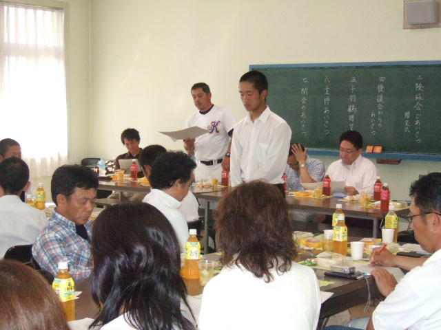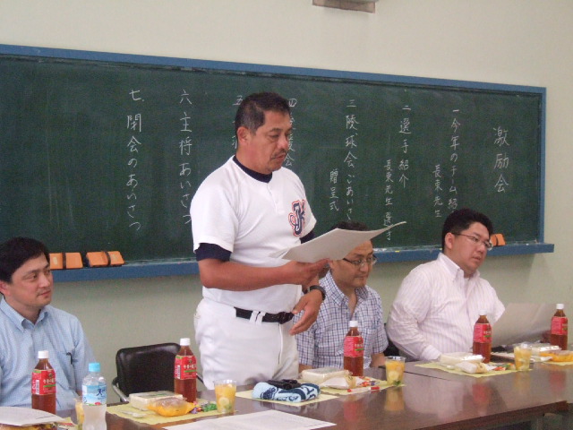 ![]() 選手紹介をする長束監督 |