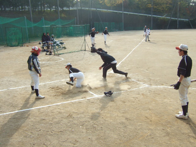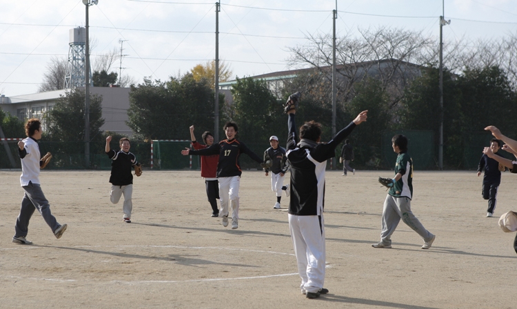 2010年12月12日(日)、9時から光陵高校グラウンドにてソフトボール大会が 開催されました。すっかり恒例となった、現役野球部、後援会(父母会)、 陵球会(OB会)の3団体の親睦を目的とした交流イベントです。