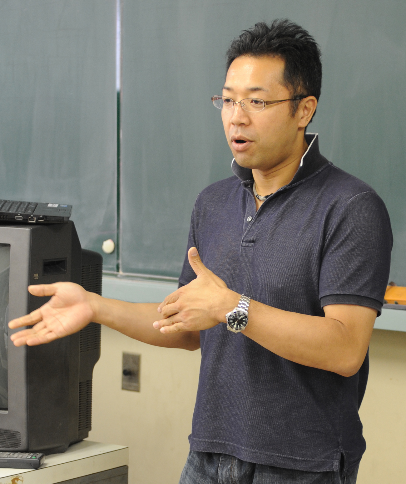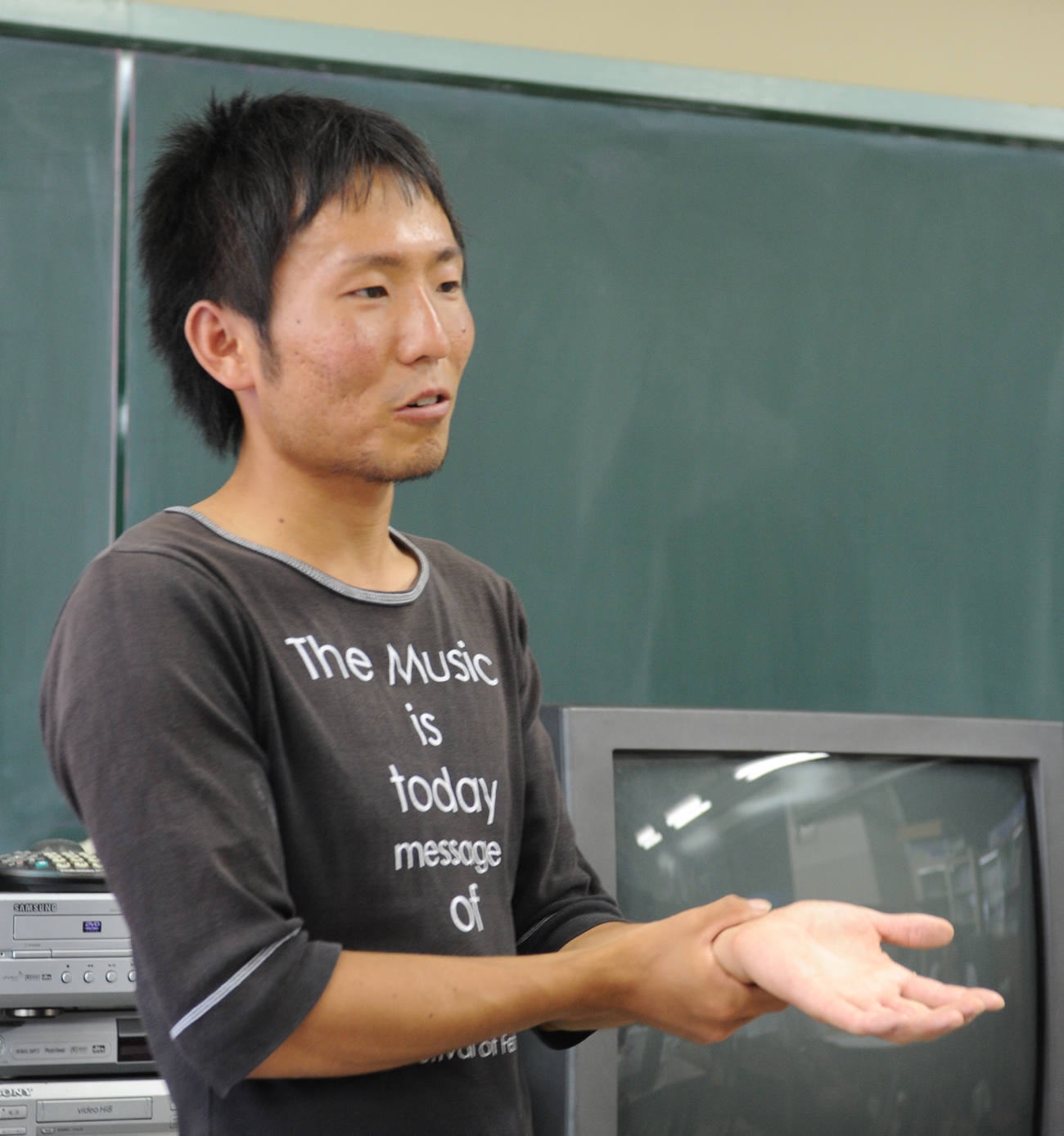 冒頭、上田氏があいさつし陵球会の活動などを紹介。年一度の総会やソフトボール大会への参加を呼びかけたり、 「陵球会に入ると縦のつながりができるので、進路選択や就活に役立つ話が多く聞ける。」などと魅力を語った。