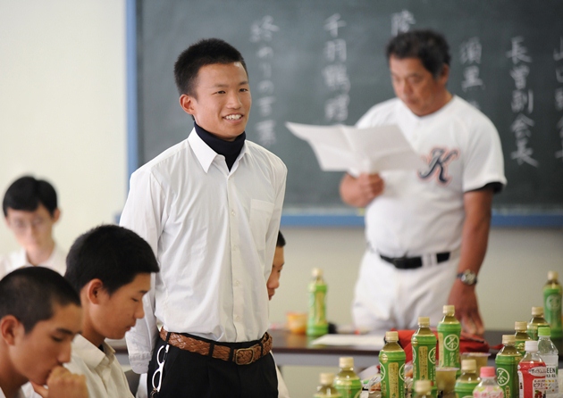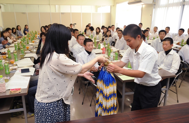 ![]() 父兄から曽我主将へ千羽鶴の贈呈 |