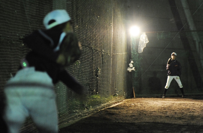 ![]() 日没後も打撃練習を続ける選手たち |